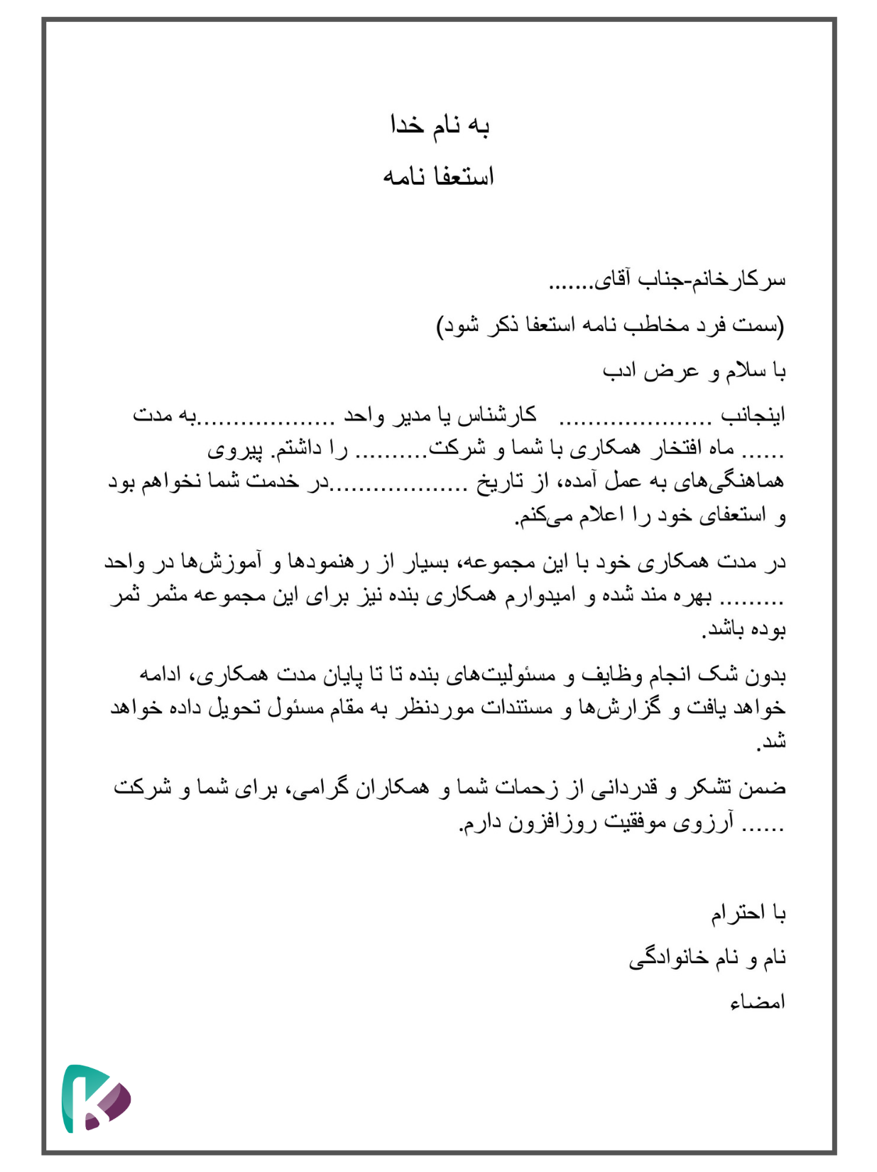 چارچوب کلی متن استعفا نامه به این صورت است :