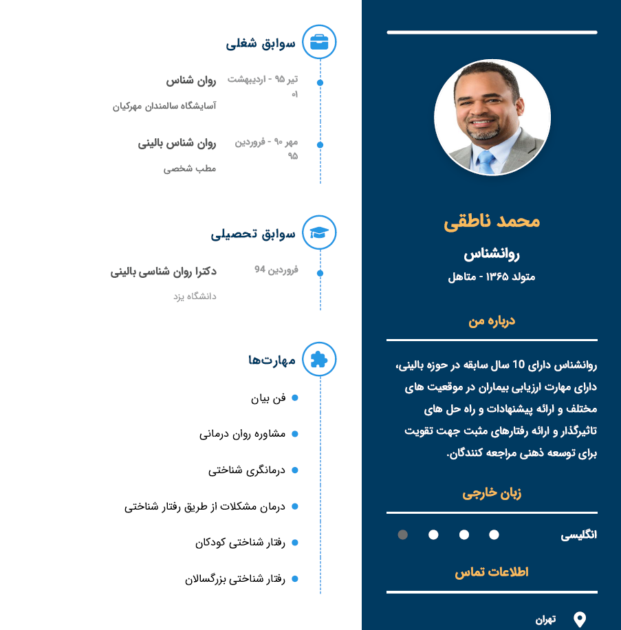 در تصویر زیر میتوانید یک نمونه از درباره من رزومه یک روانشناس را ببینید.